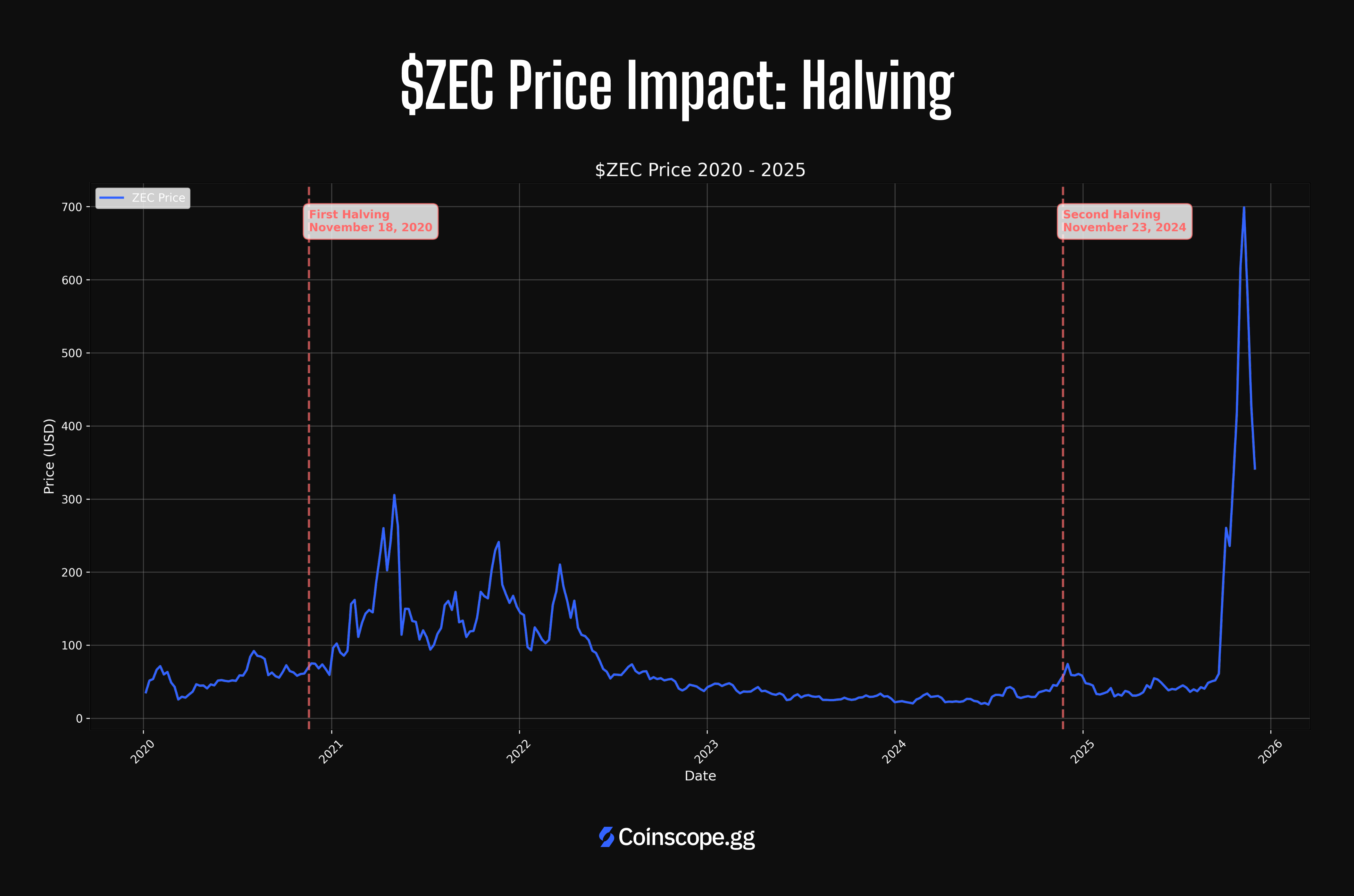 In ZEC’s case, the more pronounced price moves tended to cluster around protocol or governance changes (such as dev fund updates), major network upgrades, and institutional product launches, rather than around the halving date alone.